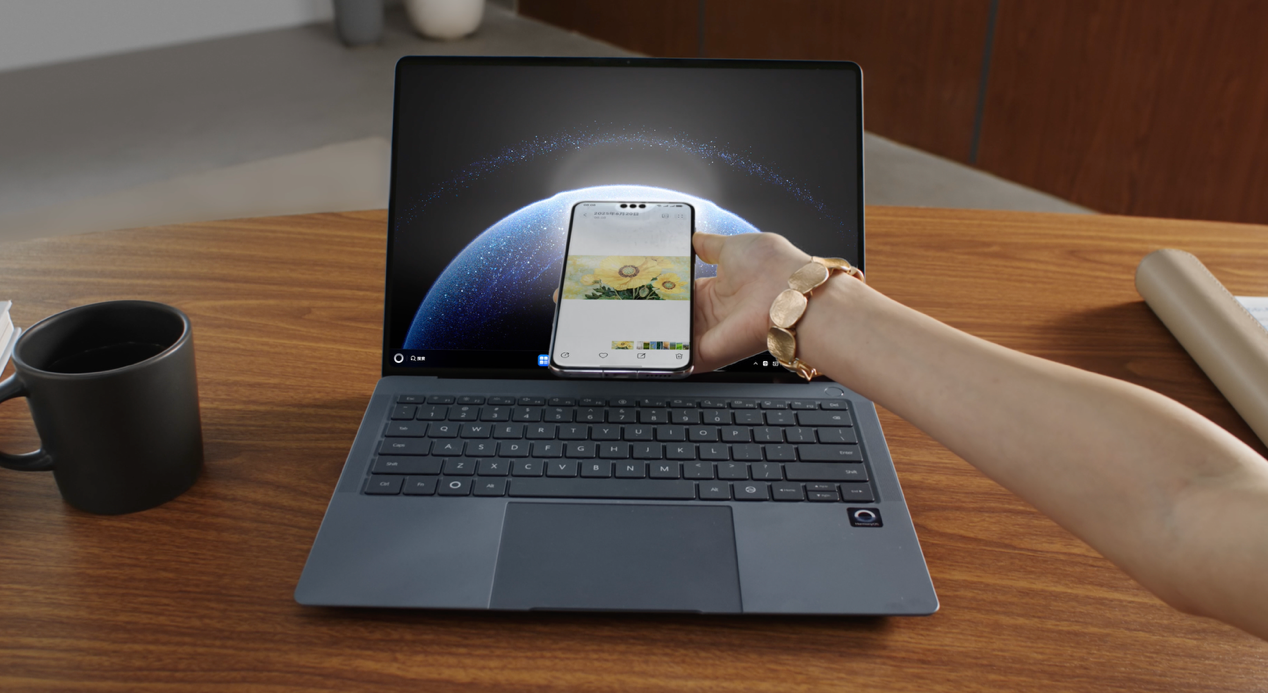 以最常见的手机分享文件到电脑为例,当用户在手机上选好图片或文档,只需用手机顶边轻触笔记本屏幕,系统的融合感知技术能识别用户轻触的具体位置以及该位置对应的应用窗口。