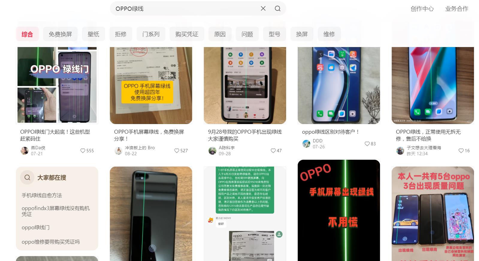 比如新浪旗下消费者服务平台黑猫投诉显示有“538条投诉中包含OPPO绿线”,小红书平台按OPPO绿线检索更是满屏都是相关的用户吐槽笔记……兴许真的不能怨这些媒体们监督的“积极性”太高。