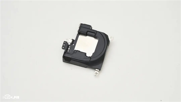 而在电池的下方,大家可以看到,苹果把更多的空间让给了振动马达,反而把底部的扬声器给砍了。