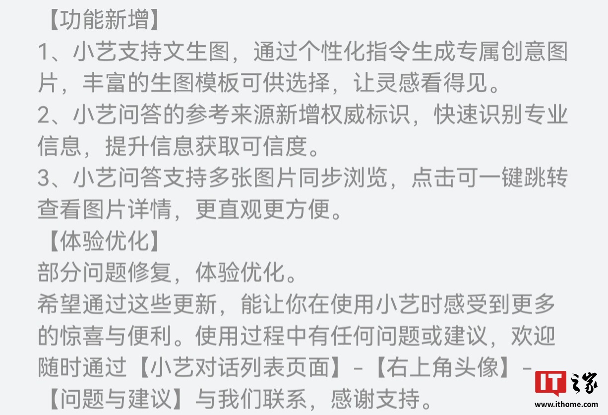 IT之家 10 月 26 日消息,华为鸿蒙 HarmonyOS 4.X 系统版本的全新小艺智能助手已开启 12.2.9.400 版本众测升级。据介绍,搭载了大模型能力的智慧助手小艺能够完成更复杂的任务,众测期间可体验文案辅助创作能力、资讯快速摘要和对话式问答能力等。