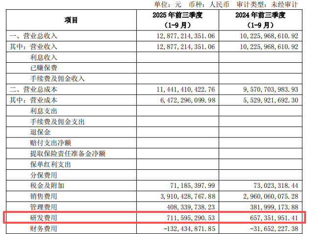 截至三季度末,其2025年研发费用已达7.12亿元,同比增长8.37%。