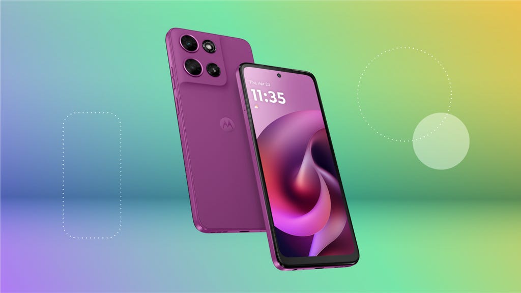 价格稍高的Moto G同样搭载了同款处理器,但存储空间提升至128GB,有线充电速度也更快,达到了30瓦。其后置摄像头系统包括一颗5000万像素广角摄像头和一颗200万像素微距摄像头,前置摄像头则为3200万像素。在颜色选择上,它提供了两种选项:Pantone Cattleya Orchid(类似品红色)和Pantone Slipstream(灰色)。