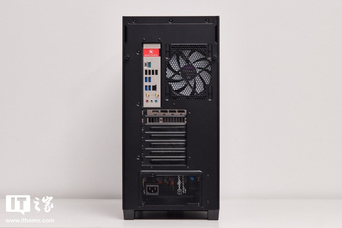 机箱背部的设计比较规整,I/O 接口面板的配置主打一个够用,包含:
