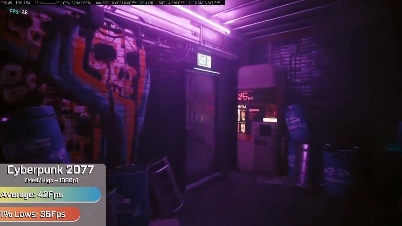 更令人惊喜的是,即使是《赛博朋克 2077》和《杀手 3》这类硬件要求较高的游戏,在 1080p 高画质下也分别取得了 42 帧和 47 帧的平均帧数。