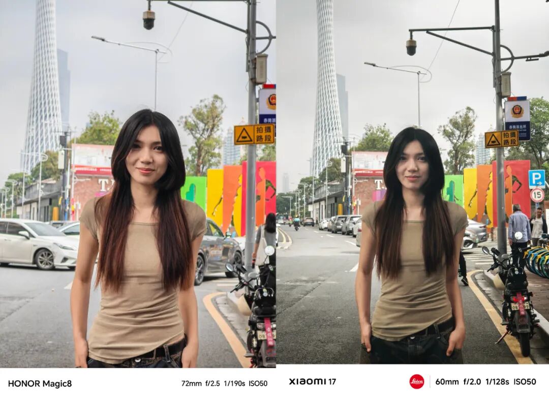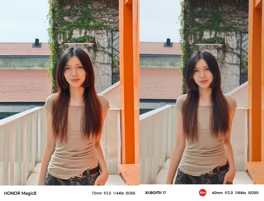 有徕卡加持的小米 17 色调上会更有质感,不管是主摄还是长焦,白天拍景拍人都能很好出片;作为唯一一家没有联名的旗舰,荣耀 Magic 8 的影像效果总体无功无过,画面总体会透亮一点。