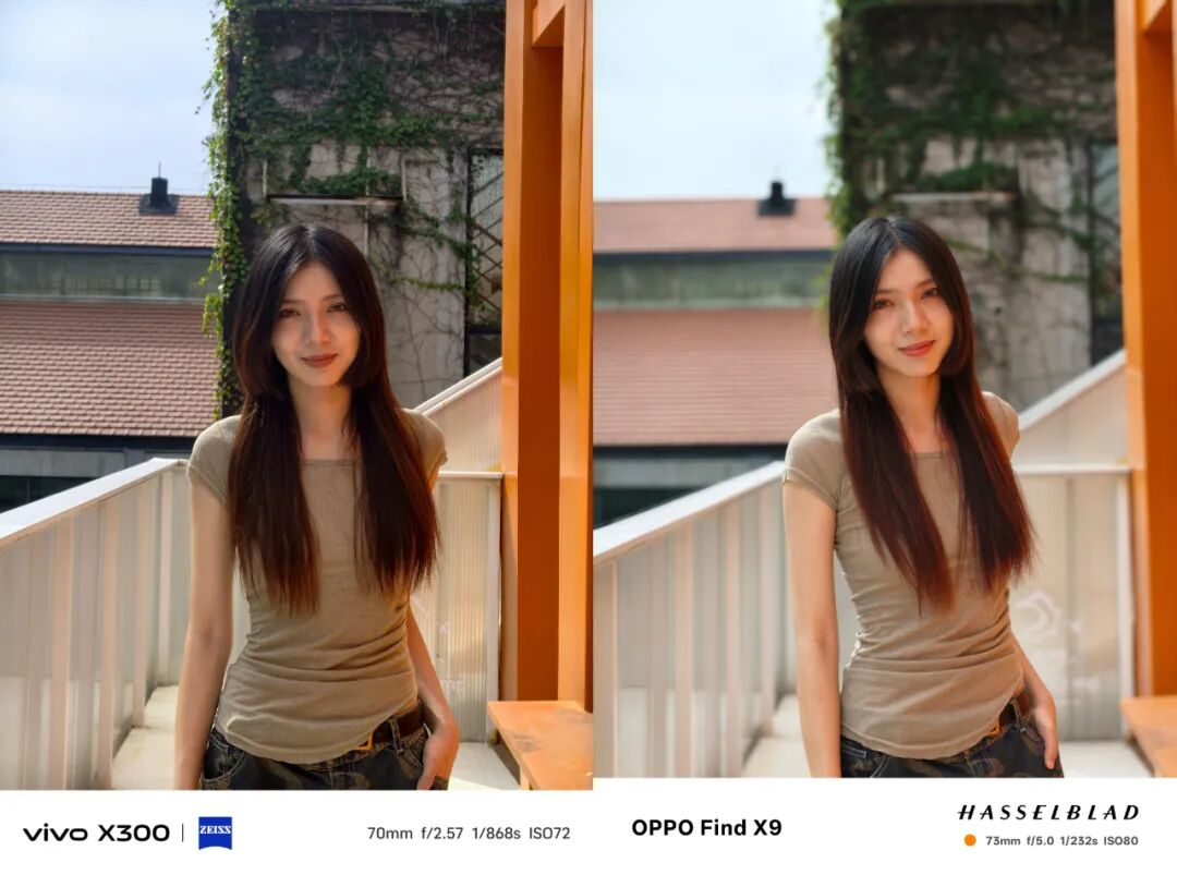 而面对阴天灰蒙蒙的人像场景,OPPO Find X9 的色彩表现要相对更舒服,并且虚化也很到位,相比较下 vivo X300 以自然光感为主。