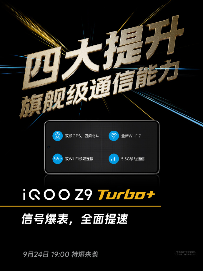 IT之家 9 月 22 日消息,iQOO 官方今日对 Z9 Turbo + 的通信能力进行预热,新机将于 9 月 24 日 19:00 发布。