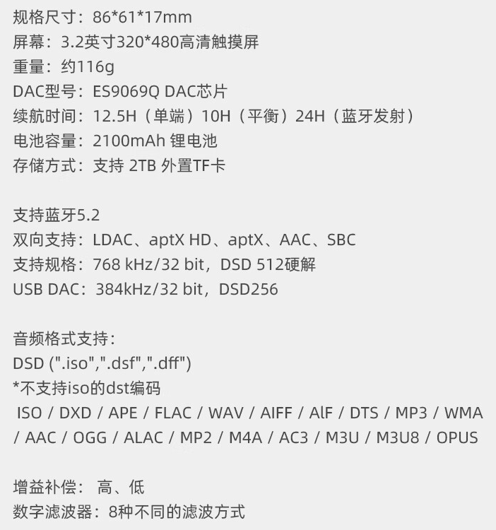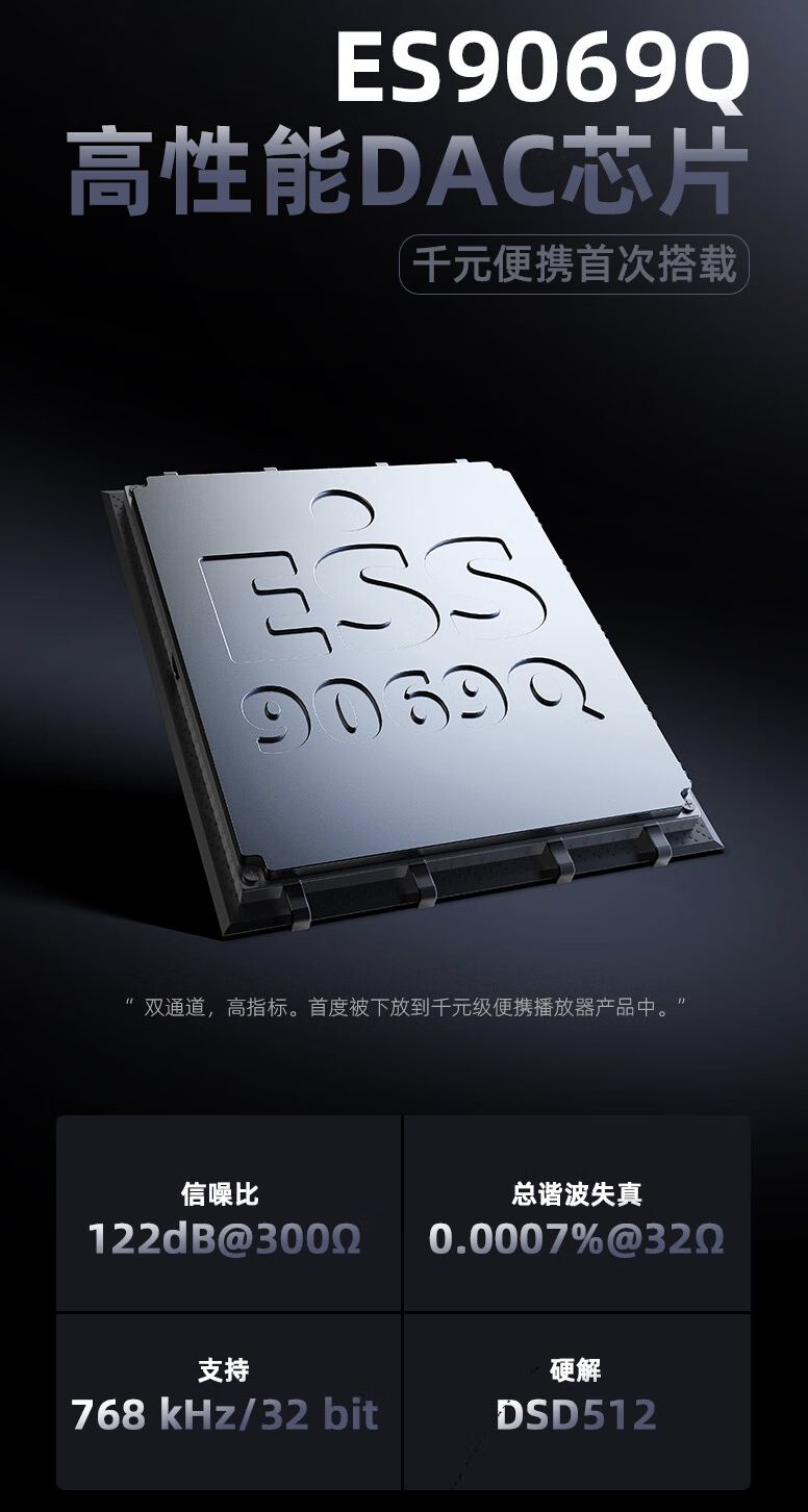 规格方面,官方称山灵 M1 Plus 为“推力战神”,其号称“首度在千元级播放器品类搭载了高阶的 ES9069Q DAC、双 SGM8262 运放”,可提供高达 661mW@32Ω 的推力。同时,M1 Plus 搭载蓝牙 5.2 技术(支持 LDAC / aptx HD 音频传输技术),内置 2100 毫安时电池,最长续航高达 12.5 小时。