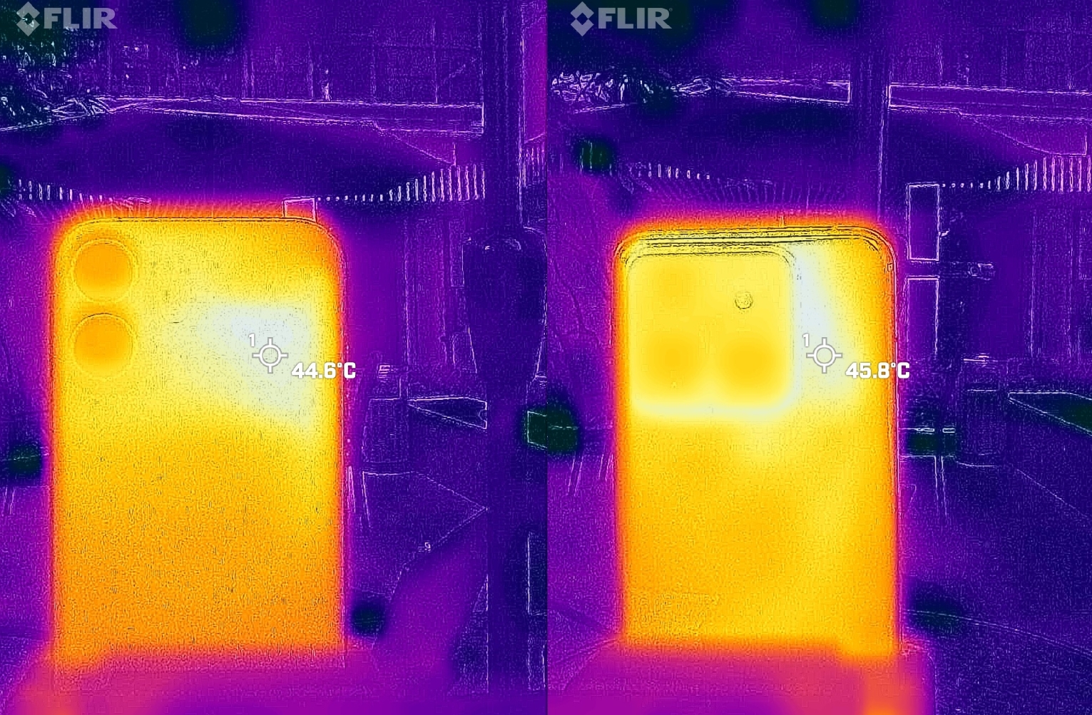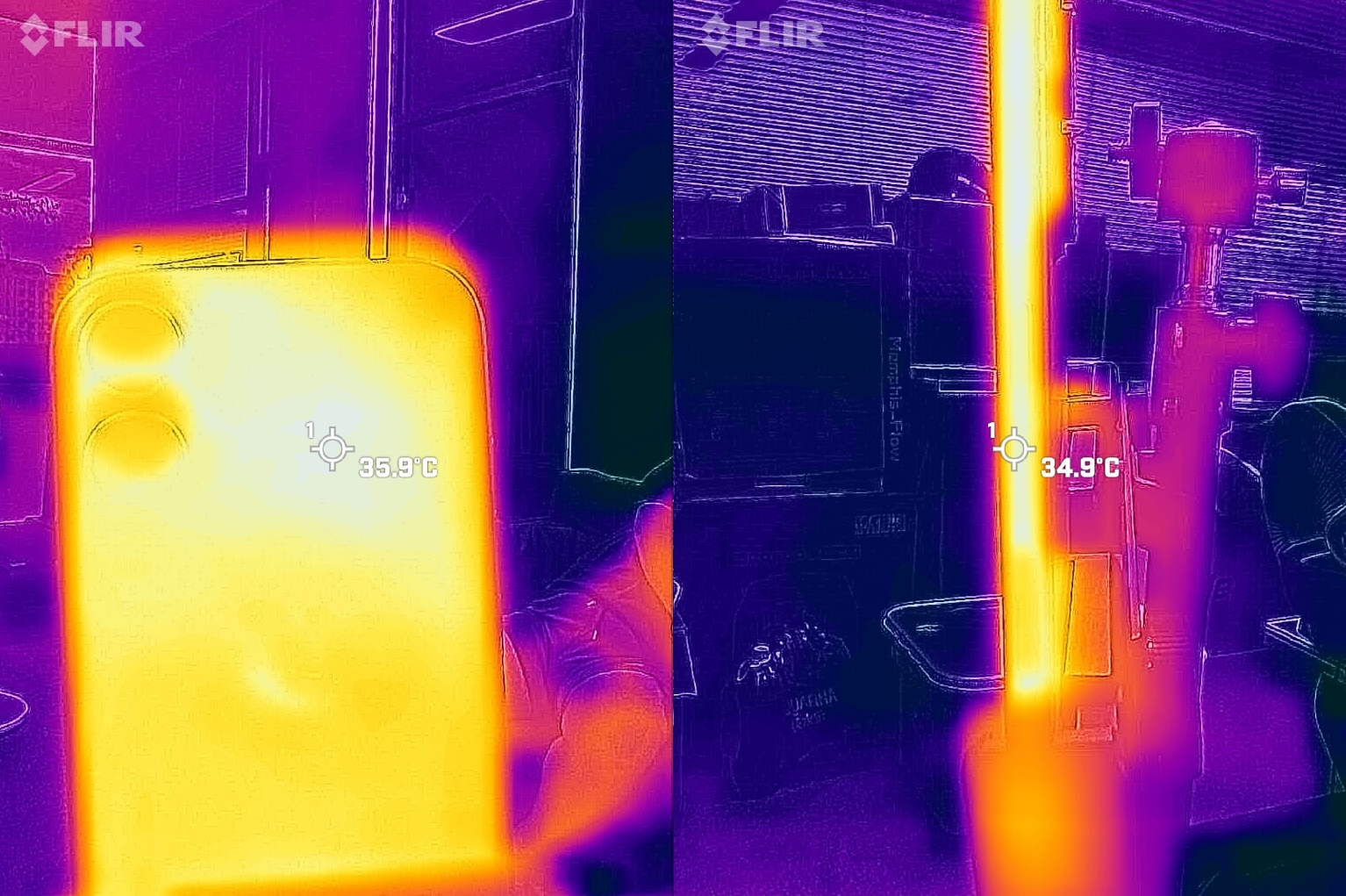 可见温度差距还是较为明显的,实际上手时能明显感觉到iPhone 16的上半部分发烫,而小米14只是感觉温热。