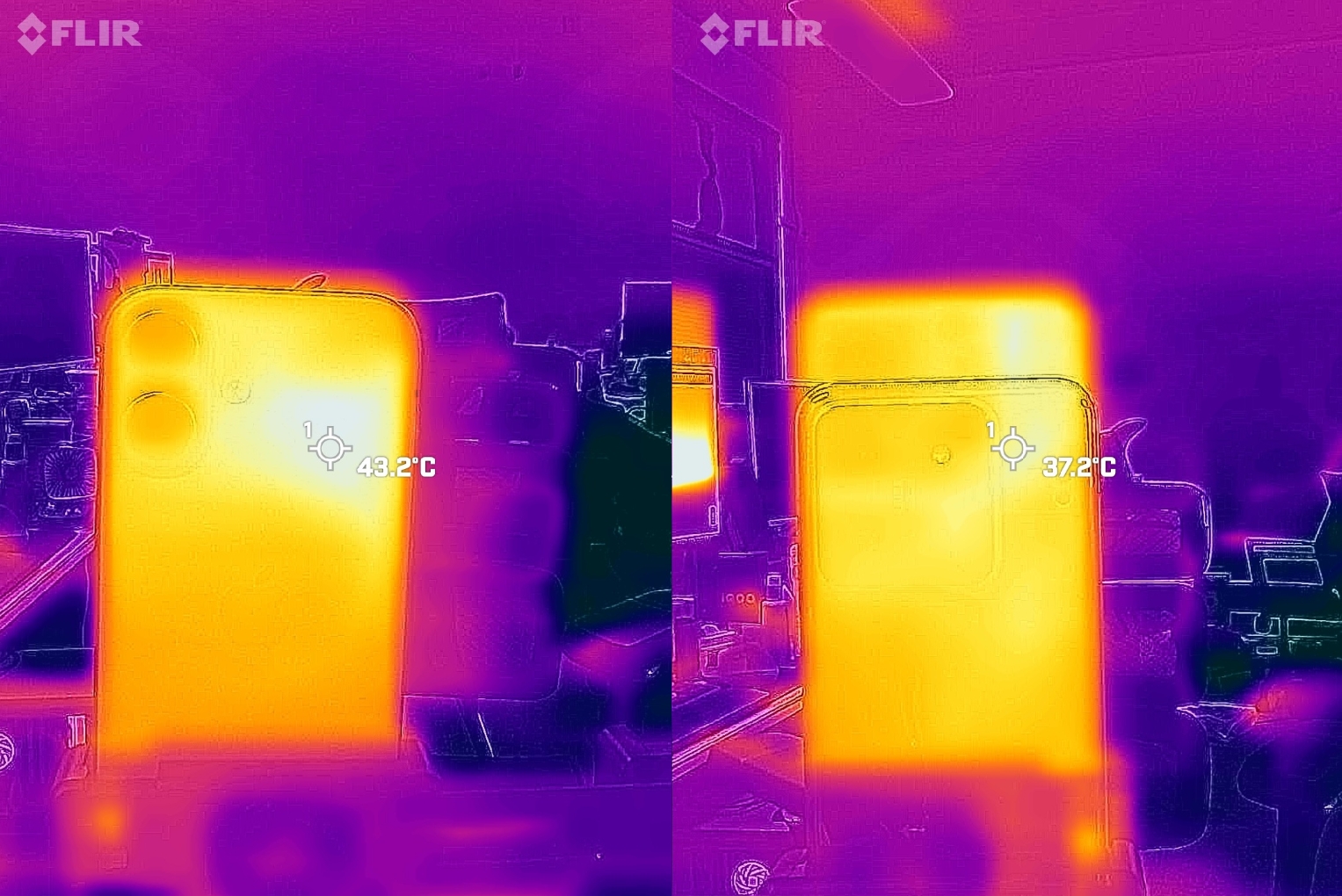 虽然在旗舰手机里,43.2度算不上是什么特别高的温度,但是凡事就怕对比,在小米14的37.2度衬托下,iPhone 16的温度明显高出不少。