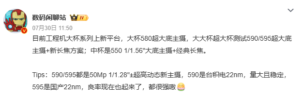 一个是5000万像素1/1.56英寸大底,另一个是5000万像素1/1.3英寸超大底。