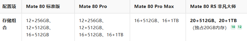 定位更高的Mate X7典藏版,则有20GB+1TB版本。
