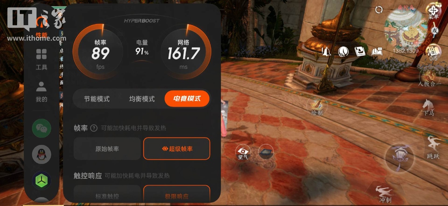 如下图所示,以《逆水寒》手游为例,开启超级帧率后,此时游戏会从原生的 60 帧升级到 90 帧,并且这 90 帧是软件可检测到的,流畅实打实的肉眼可见。