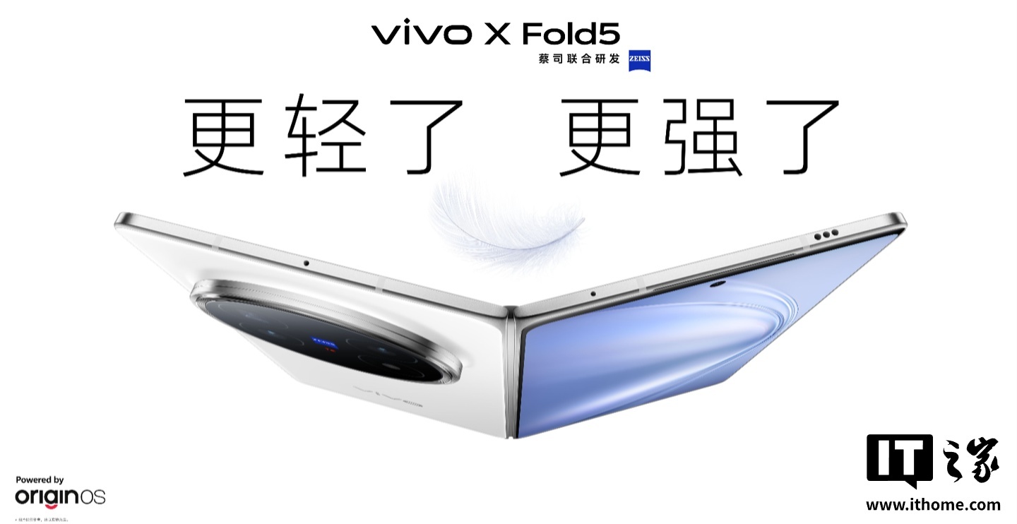 据IT之家此前报道,vivo 目前最新的大折叠手机是 X Fold5,发布于今年 6 月末,采用 217g 轻薄机身设计,搭载高通 8 Gen 3 处理器,首发等效 6000mAh 蓝海电池,配备蔡司超级长焦影像系统,折叠厚度约 9.2mm、单边厚度约 4.3mm,发布时标价 6999 元起。