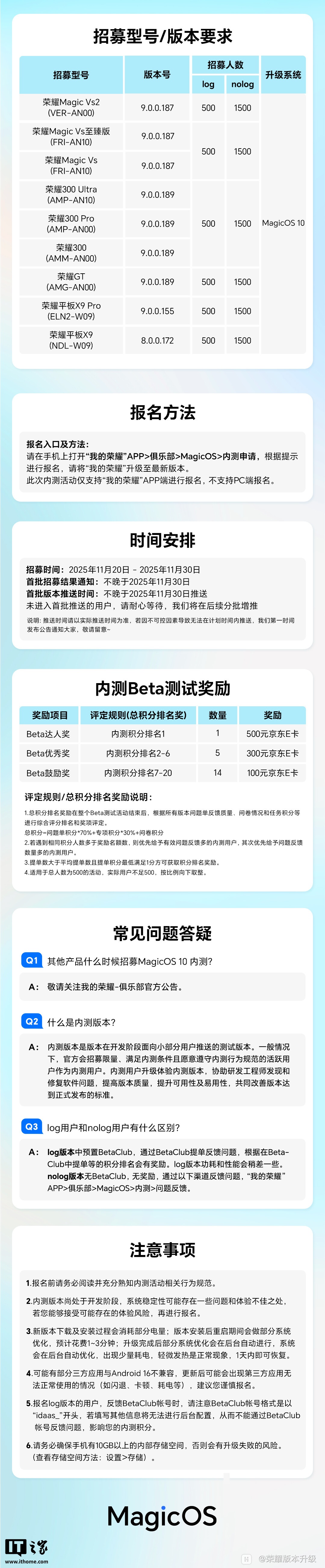 荣耀 Magic Vs2、荣耀 Magic Vs 至臻版、荣耀 Magic Vs、荣耀 300Ultra、荣耀 300Pro、荣耀 300、荣耀 GT 即刻开启内测报名,11 月底前推送内测版本;