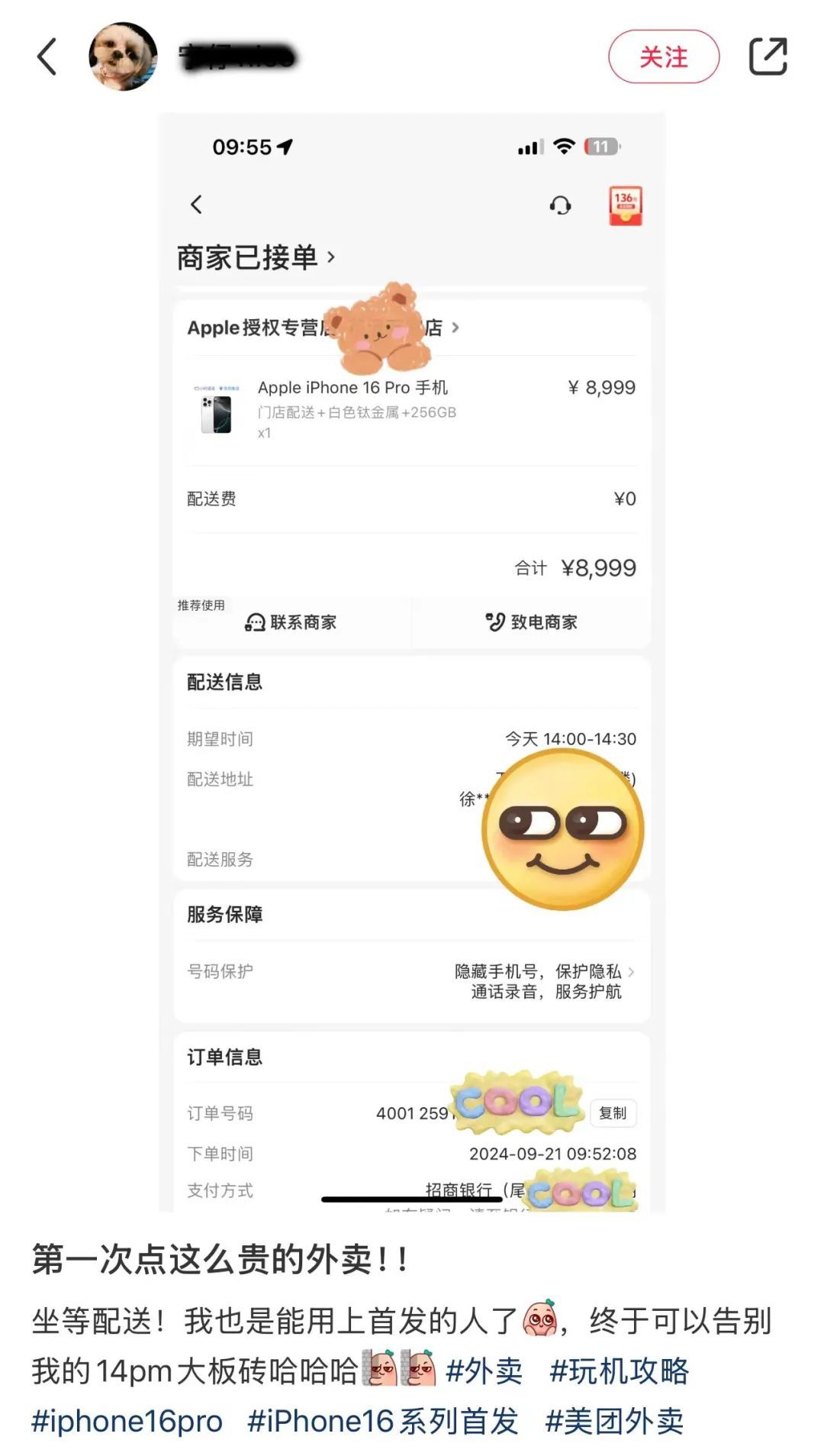 “第一次点这么贵的外卖!坐等配送!我也是能用上首发的人了!”