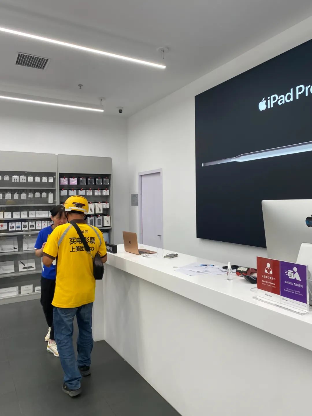 一些消费者是为了应急,比如在泼水节上弄湿了手机;但更多的人选择从美团闪购等平台购买iPhone,是为了既能享受正品保障和平台优惠,又能在需要时到实体门店寻求帮助。还有一些游客,在门店选好机型,再从线上“点外卖”,以享受平台优惠。