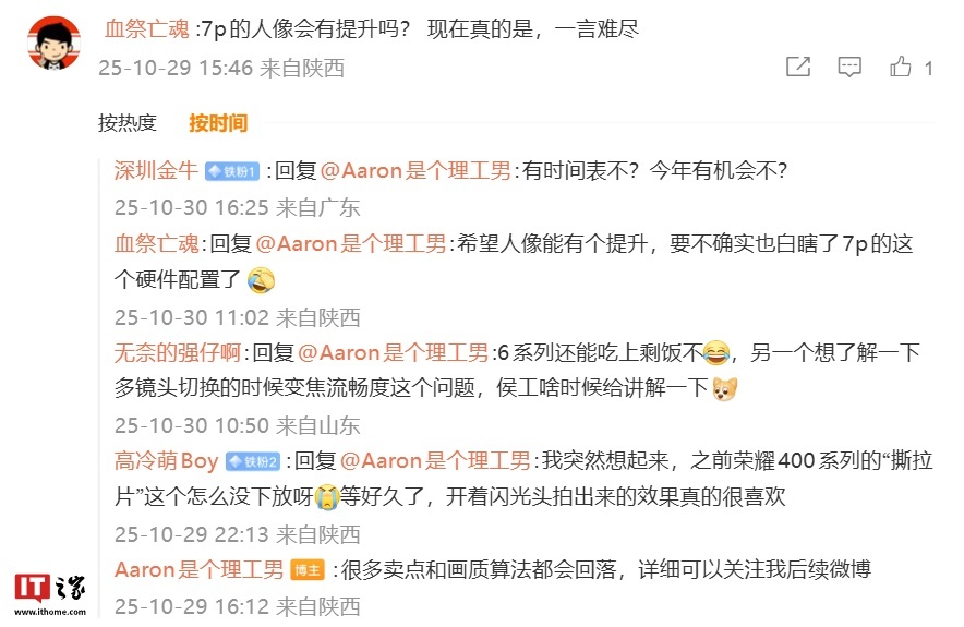 值得一提的是,此前有用户询问 Magic7 Pro 手机的人像拍摄能力是否还会有提升,荣耀影像系统专家 @Aaron是个理工男 回复称:“很多卖点和画质算法都会回落。”这意味着荣耀 Magic7 Pro 手机后续将升级支持 Magic8 系列的部分卖点功能,同时还将升级画质算法等。