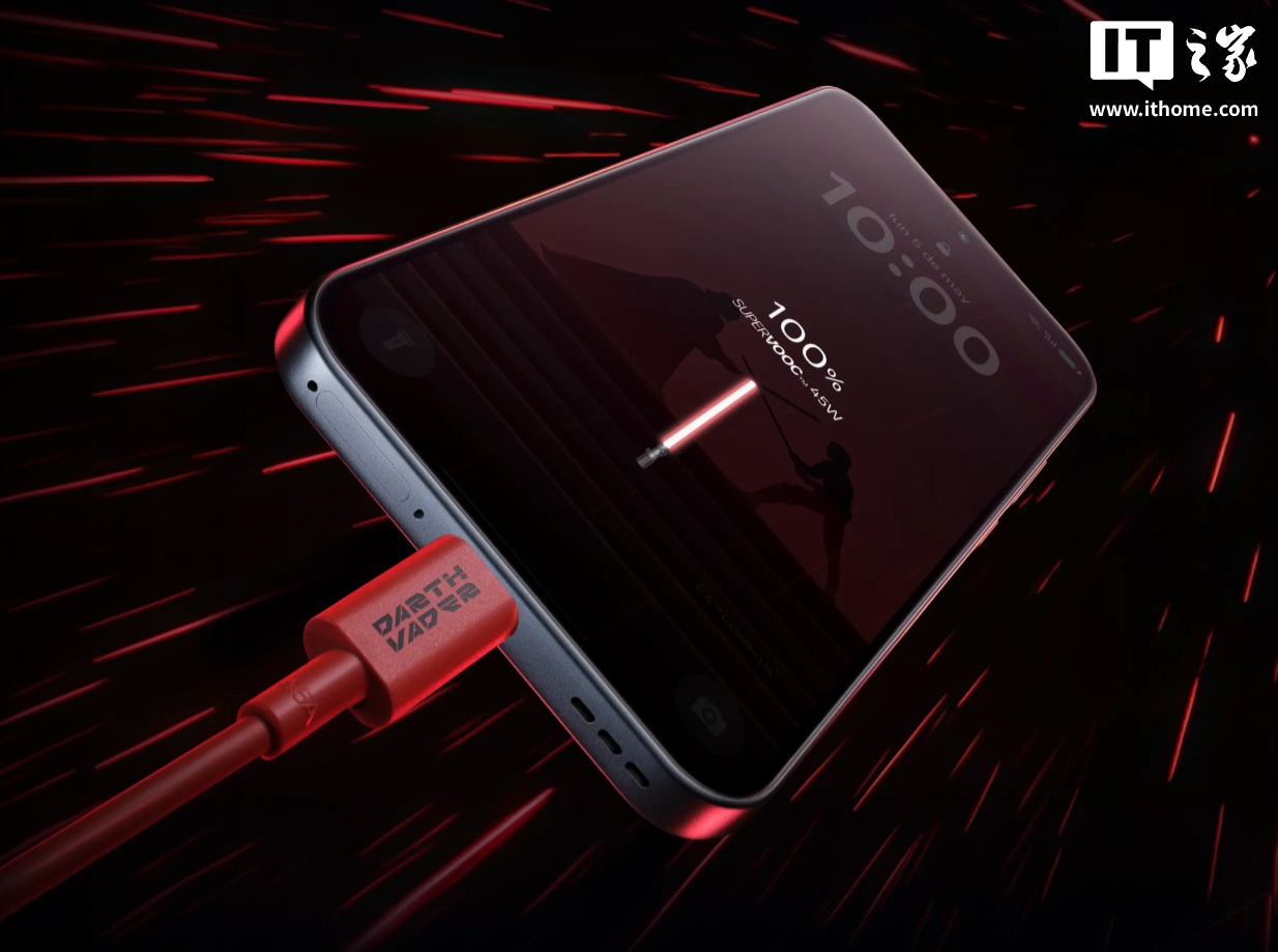 IT之家注意到,这款手机的 UI 遍布《星球大战》主题,内部的桌面壁纸、图标,配备 6000mAh 电池,支持 45W 有线快充,屏幕支持 120Hz 高刷,分辨率为 2372*1080,最高亮度可达 1400 尼特,前置 3200 万像素镜头,后置 5000 万像素主摄、800 万像素广角镜头。