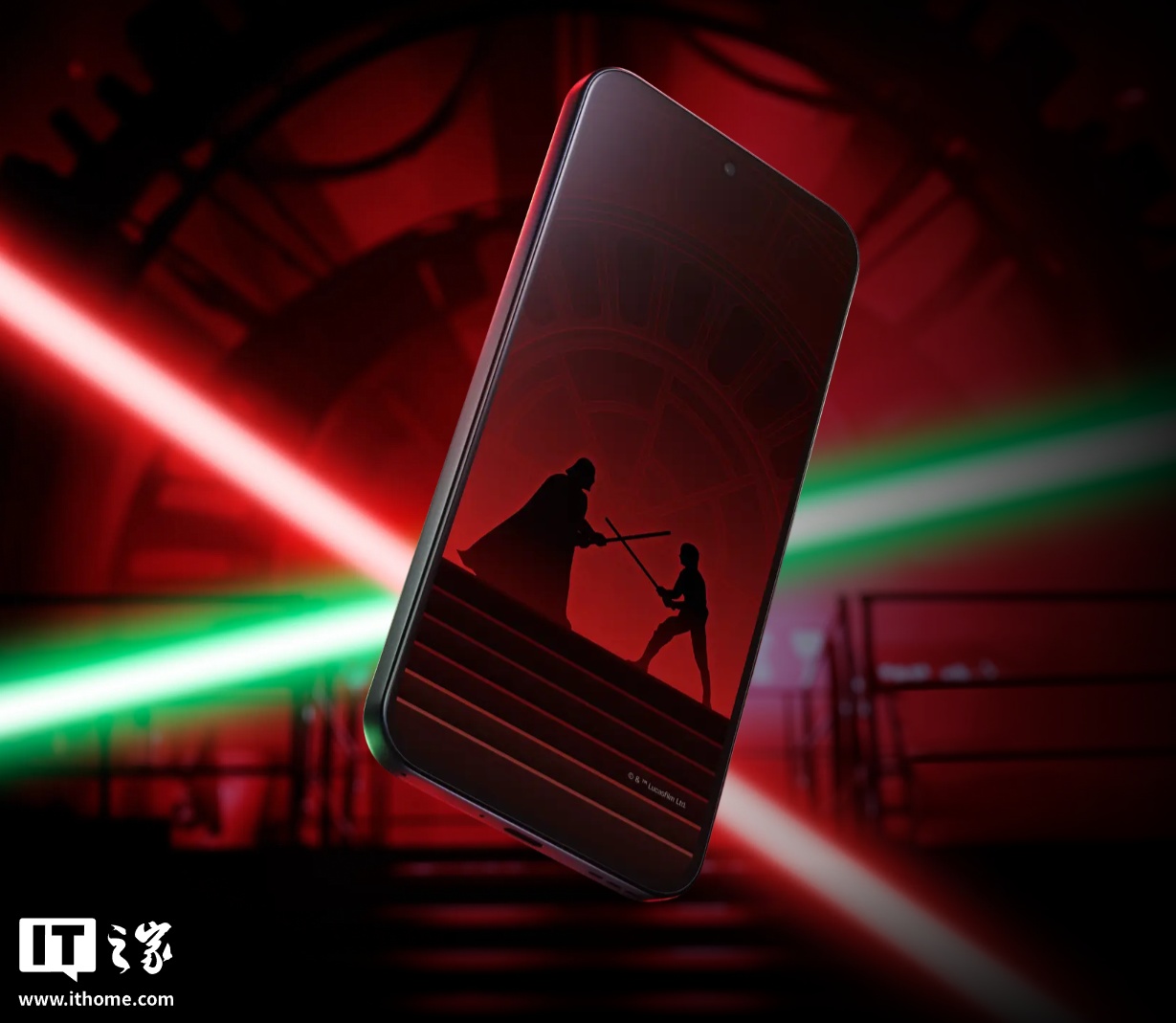据介绍,这款手机最大的亮点就是遍布《星球大战》设计,机身整体采用暗黑设计,背部带有达斯・维德头盔图案、死星标志和品牌 Logo,机身边框采用深灰色调,电源键带有醒目的红色点缀。