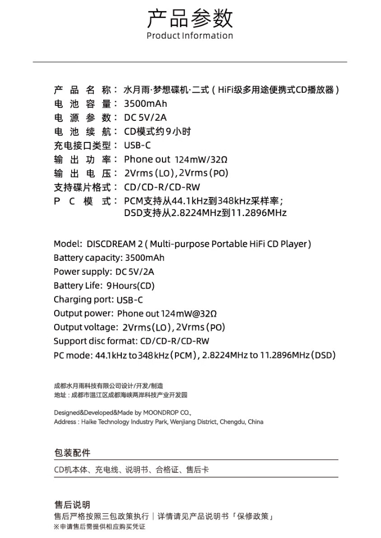 IT之家附水月雨・梦想碟机・二式便携式 CD 播放机亮点及产品参数如下: