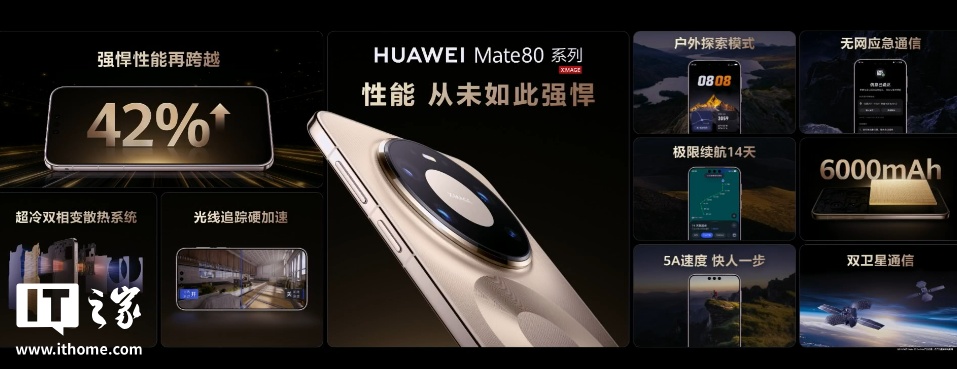 IT之家 11 月 25 日消息,华为 Mate 80 系列手机今日正式发布,宣称 Mate 80 和 Mate 80 Pro(12GB 内存)手机相比上一代 Mate 70/Pro 性能提升 35%。