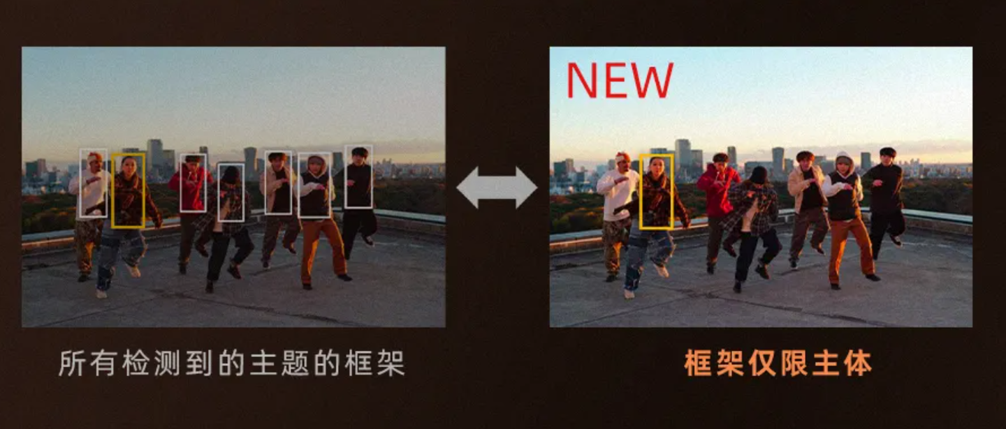 当画面内存在多个对焦对象时,可只显示主体自动识别框