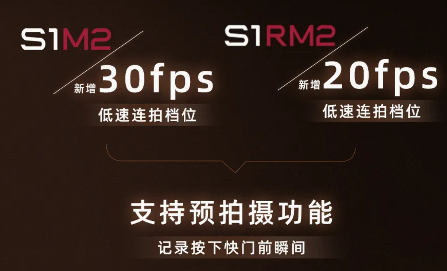 S1 II/S1R II 专属,图像优先模式下 S1 II 新增 30FPS 低速连拍挡位,S1R II 则新增 20FPS 低速连拍挡位,两者均支持预拍摄功能