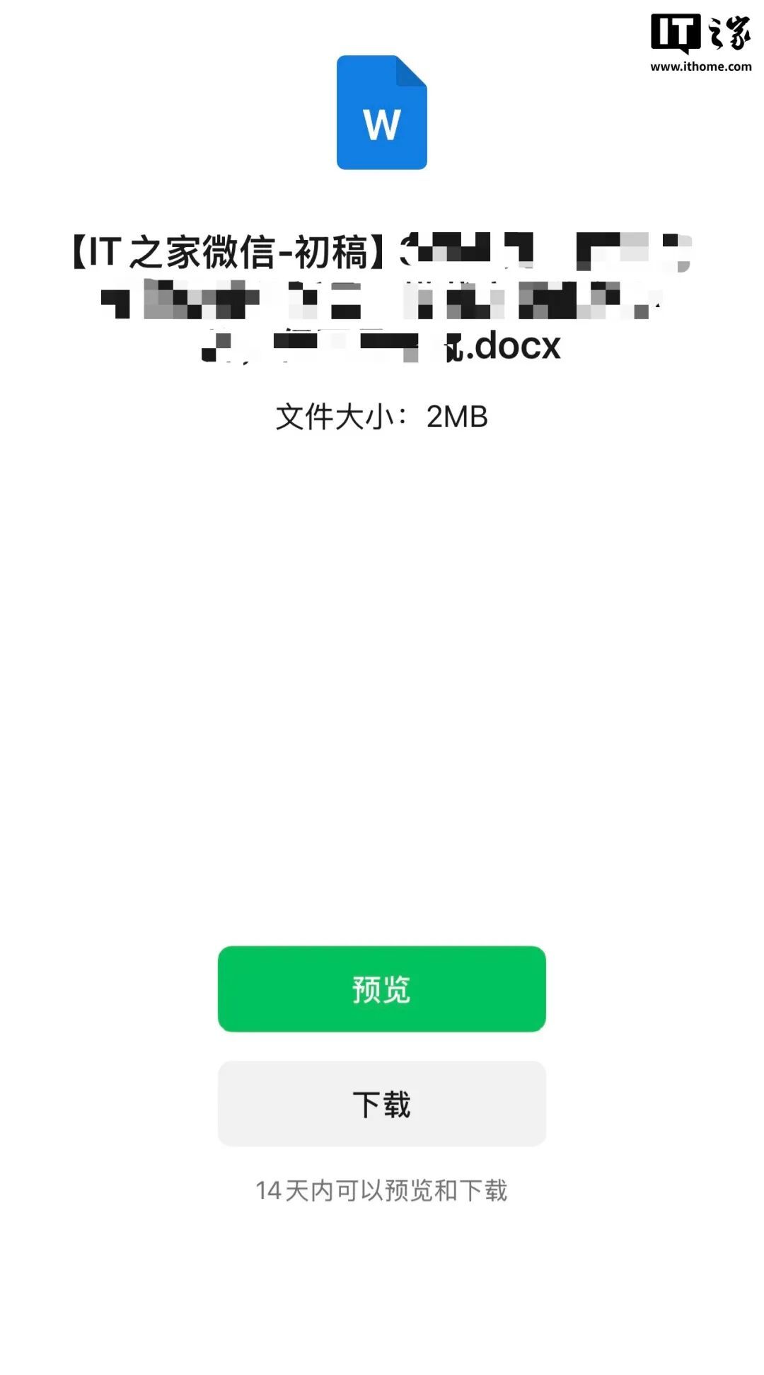 在收到主流格式的文件后,点开不再只有一个“下载”,新增“预览”。