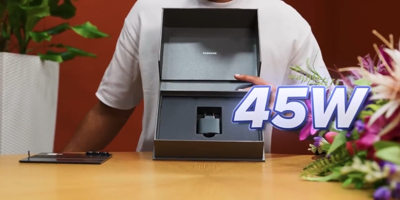 盒内配件阵容豪华,除手机本体、USB-C 数据线和取卡针外,三星罕见地附赠了一枚 45W 充电头和一个专用保护壳,彻底改变了用户对三星高端机型“不送充电器”的固有印象。