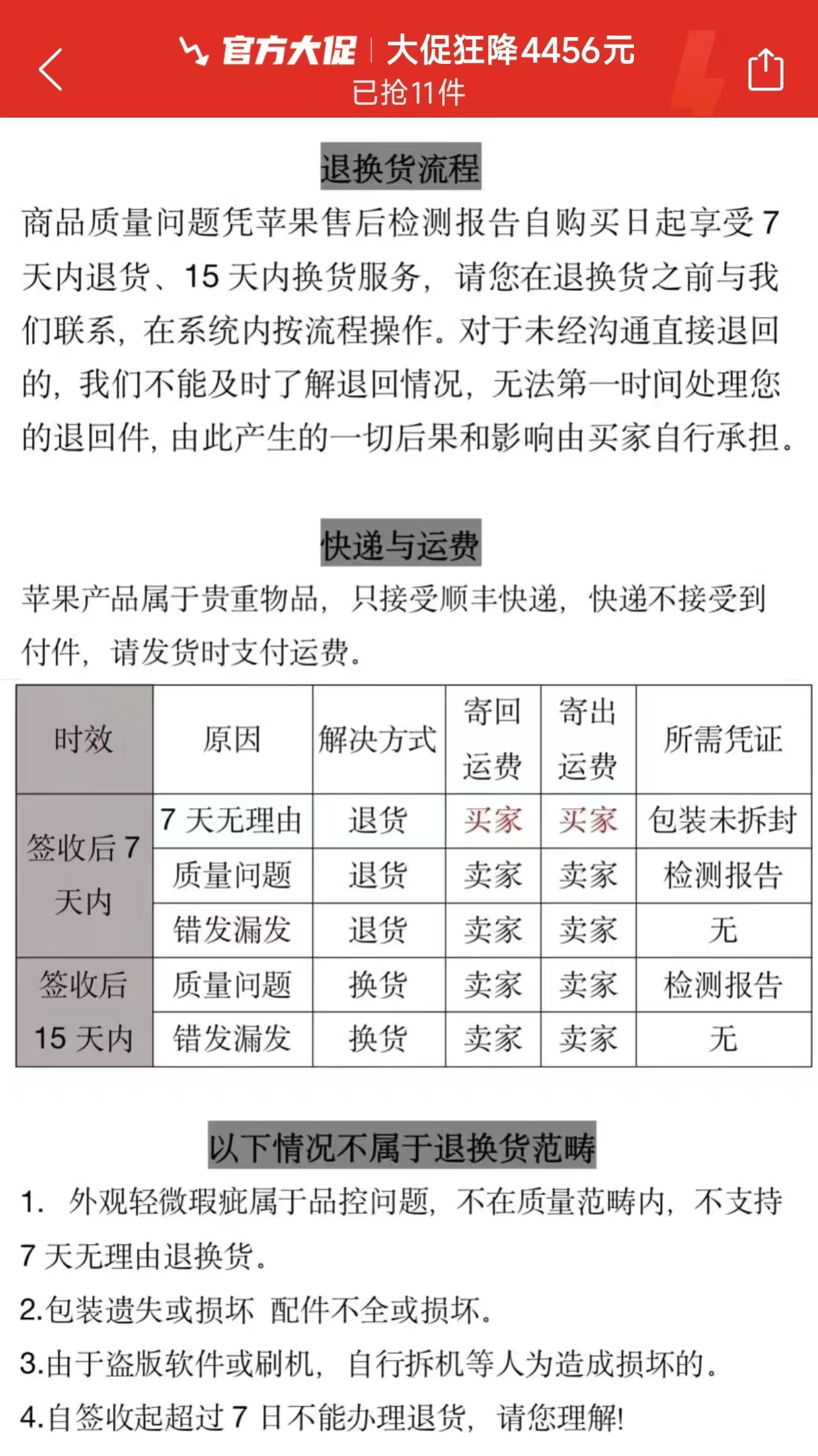不看不知道,一看吓一跳:「轻微的不明显的近距才可见的外观感受不支持退换。激活后不再处理瑕疵问题。」