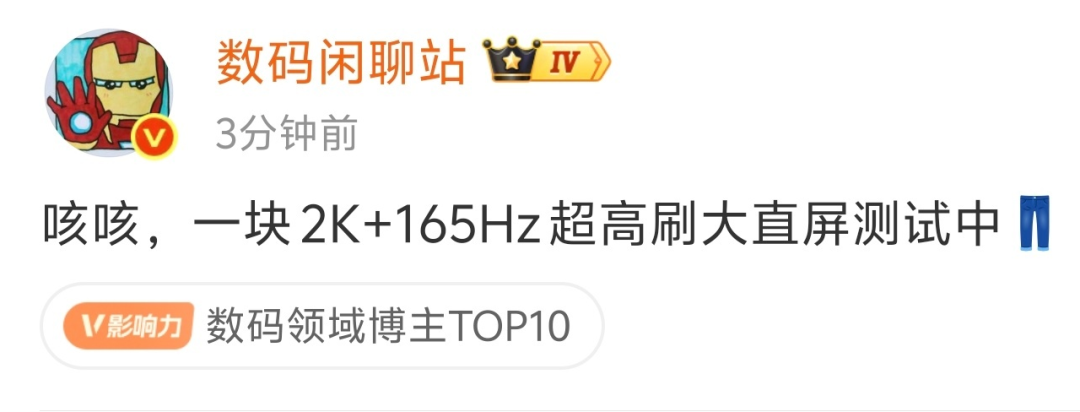 网传有新机已经开测 2K 分辨率+165Hz 超高刷。