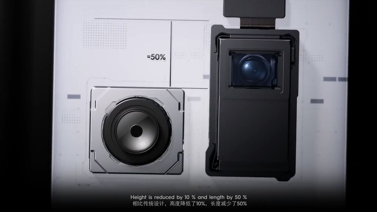 该方案主打极致轻薄,通过同轴光学设计和两面反射镜折叠光路,将模组体积缩减了 50%。这一设计能有效帮助厂商在不牺牲变焦能力的前提下,打造出机身更薄的手机。