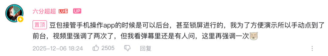 他开启了B站画中画模式,然后让Agent操作主屏,中途再截屏,结果发现,AI截到的画面只有主应用的界面,完全没有悬浮窗。
