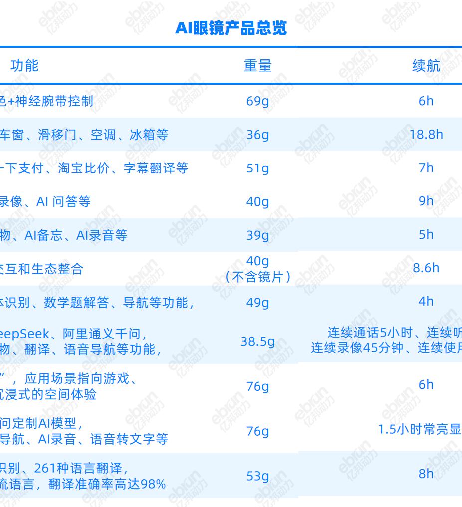 一类是听觉增强型,本质是“AI音频眼镜”,可代替蓝牙耳机,没有摄像头和光波导,通过语音交互实现通知播报、智能问答和音乐收听。对于通勤、办公等轻交互场景友好,而且价格亲民,率先完成了市场启蒙。