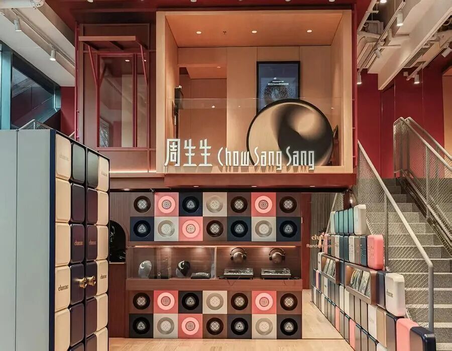 拿周生生来说,有消费者线下发现,周生生会门店提供放大镜,让消费者看清楚足金饰品的工艺。它还在线下尝试更灵活的快闪空间。比如在香港做“心碎糖水铺”,在成都搞“唱片店”,构建更多丰富的青年文化在地新场域。