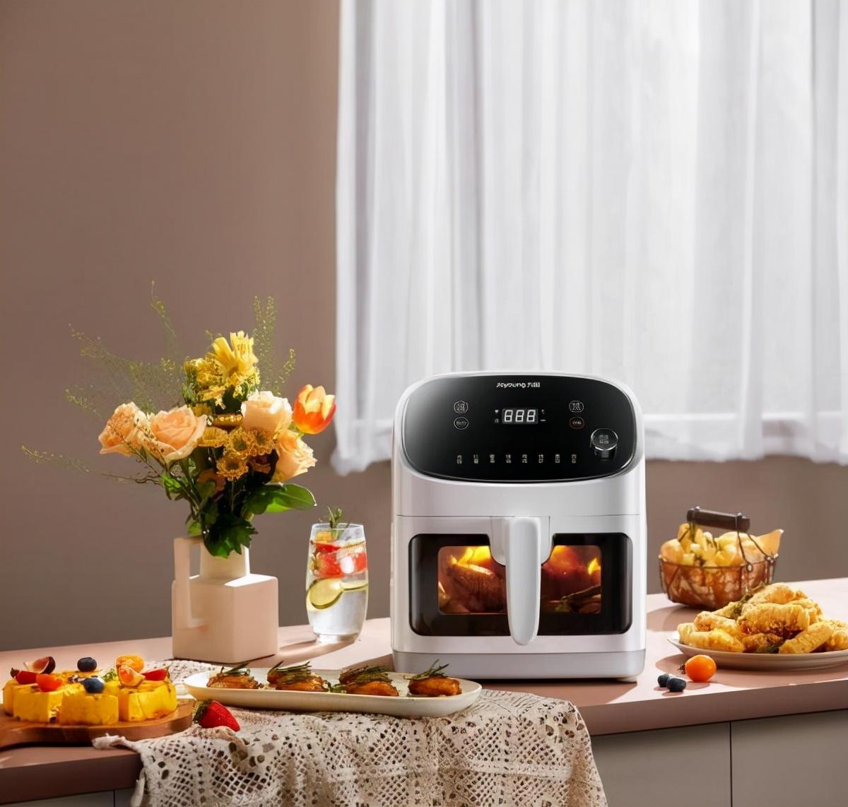 前面提到关于食材需要手动翻面的问题,九阳、美的、苏泊尔均推出了重新设计风道结构的新品,相比起传统的版本,新的设计能让锅腔内部形成更流畅的环绕式热风,绝大多数食材都不需要再手动翻面。另外,在它们的带领下,如今可视化设计的空气炸锅已经占据品类市场份额一半以上。