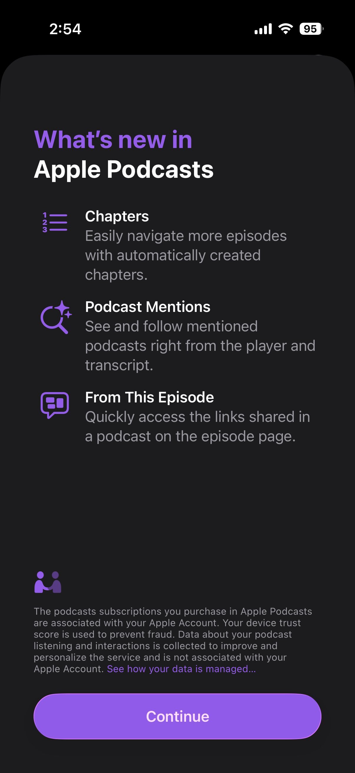 IT之家援引博文介绍,苹果新增了“播客提及”(Podcast Mentions)功能。当一个节目中提到另一个播客时,新版应用将在播放器界面和文本记录(Transcript)中自动生成一个指向被提及播客的链接。听众无需再手动搜索或复制节目名称,即可一键查看并关注感兴趣的新播客。