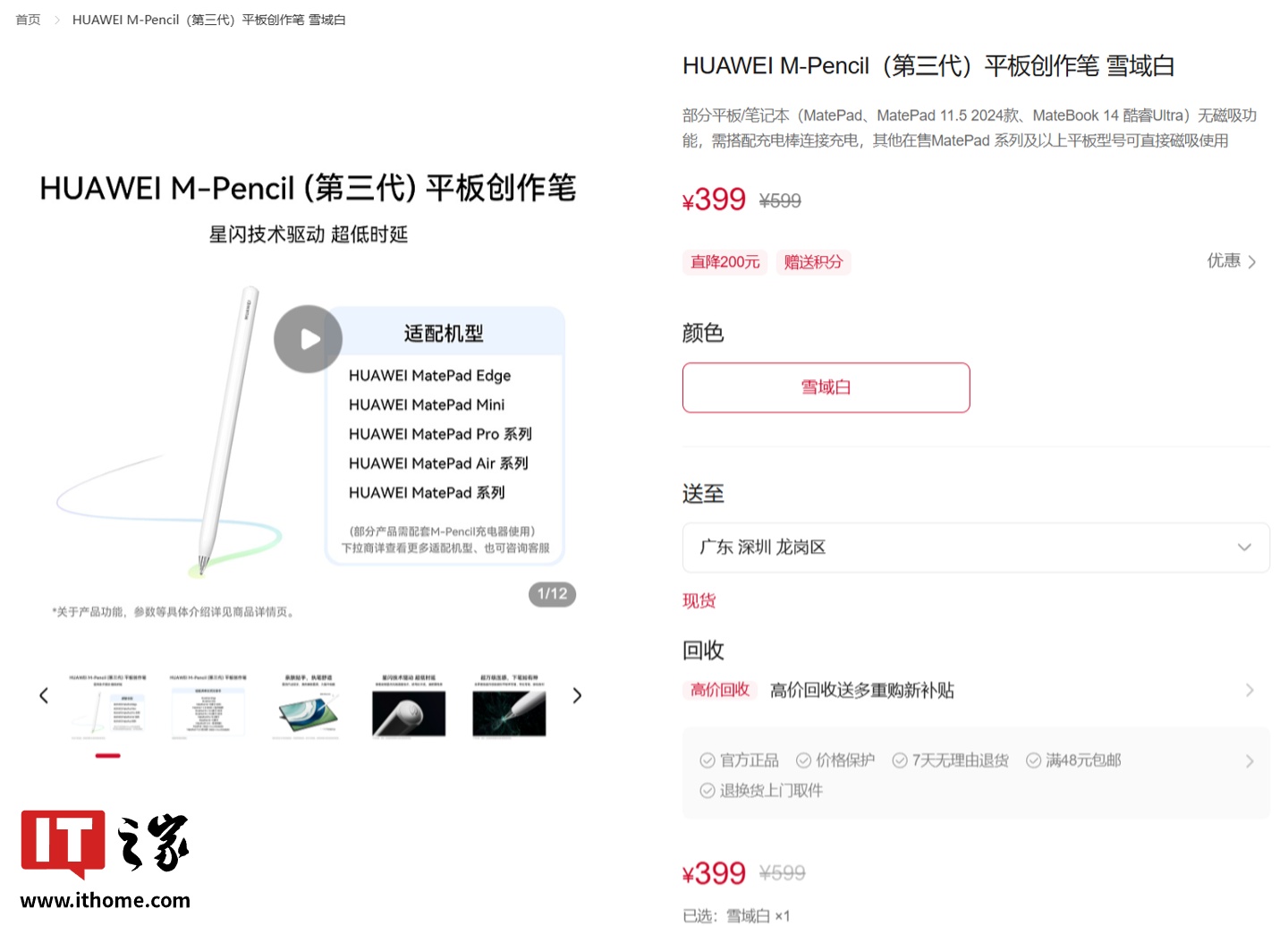 IT之家 12 月 14 日消息,在 2019 年 11 月的华为 MatePad 发布会上,华为常务董事、产品投资评审委员会主任、终端 BG 董事长余承东正式发布了 M-Pencil 手写笔:支持 4096 级压感、磁力吸附等。