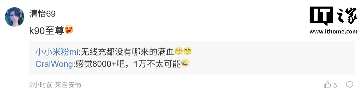博主表示,这款手机将拥有百瓦有线充电、满血无线充电,厚度不到 8.5mm,结合博主文中暗示与评论区猜测,预计为小米 REDMI K90 至尊版。