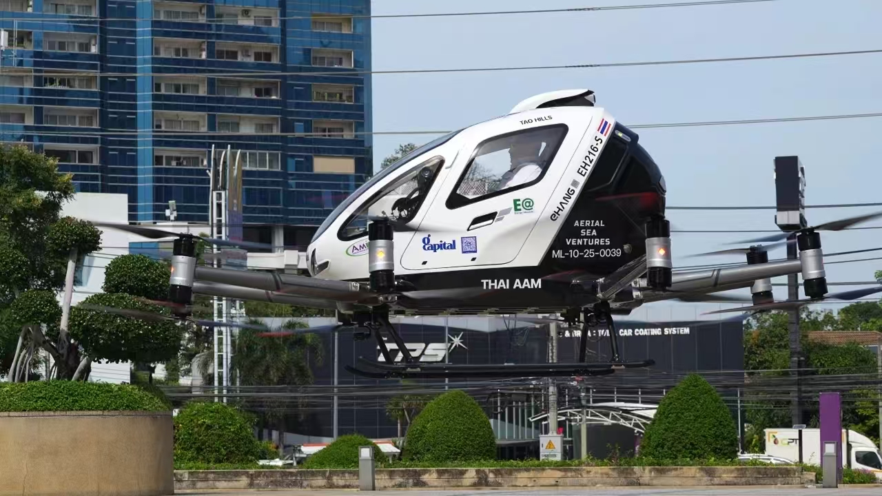 就在近期,亿航智能与泰国民航局及当地合作伙伴联合启动曼谷市内 AAM(先进空中交通)沙盒载人飞行,泰国民航局局长亲自登机体验飞行,成为全球首位亲乘 EH216-S 体验无人驾驶城市飞行的民航局长。