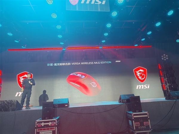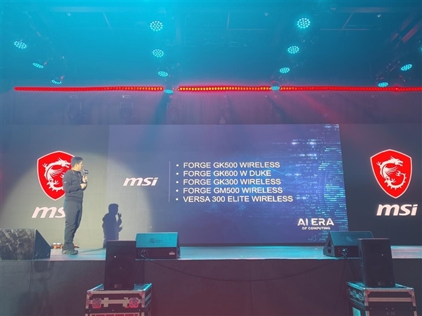 键鼠外设部分,微星主要介绍了五款产品,分别是三款接盘FORGE GK500 WIRELESS、FORGE GK600 W DUKE、FORGE GK300 WIRELESS,两款鼠标FORGE GM500 WIRELESS和VERSA 300 ELITE WIRELESS,并预告了魔龙姬联名款-VERSA WIRELESS MLG EDITION鼠标,整体采用“魔焰红”配色,融入了MLG的标识元素。