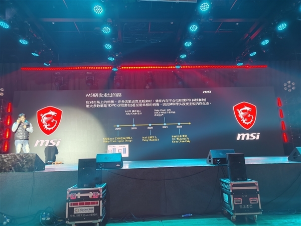 最后微星专业工程师、全球主板超频冠军TOPPC林源铭登台讲解了微星超频产品的设计理念,比如除了极限的专业超频产品,微星也提出了MPOWER等在常温下就可以简单超频的产品,林大还详细解释了B850MPOWER等超频主板要采用双槽内存设计的原因。
