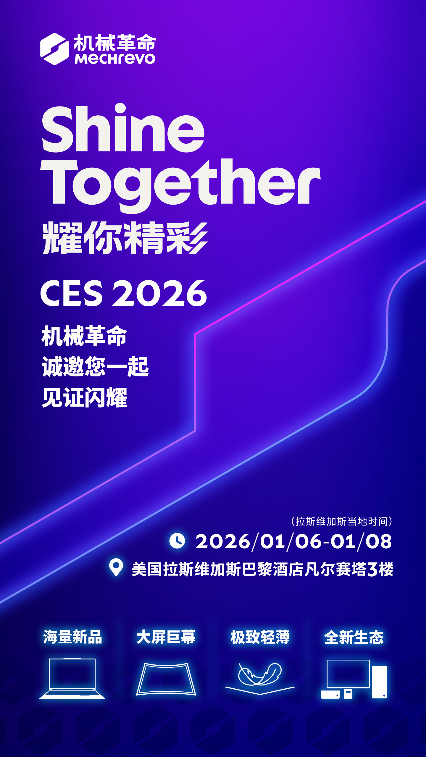 《机械革命宣布参展 CES 2026,预计将首批推出英特尔 Panther Lake 笔记本电脑》