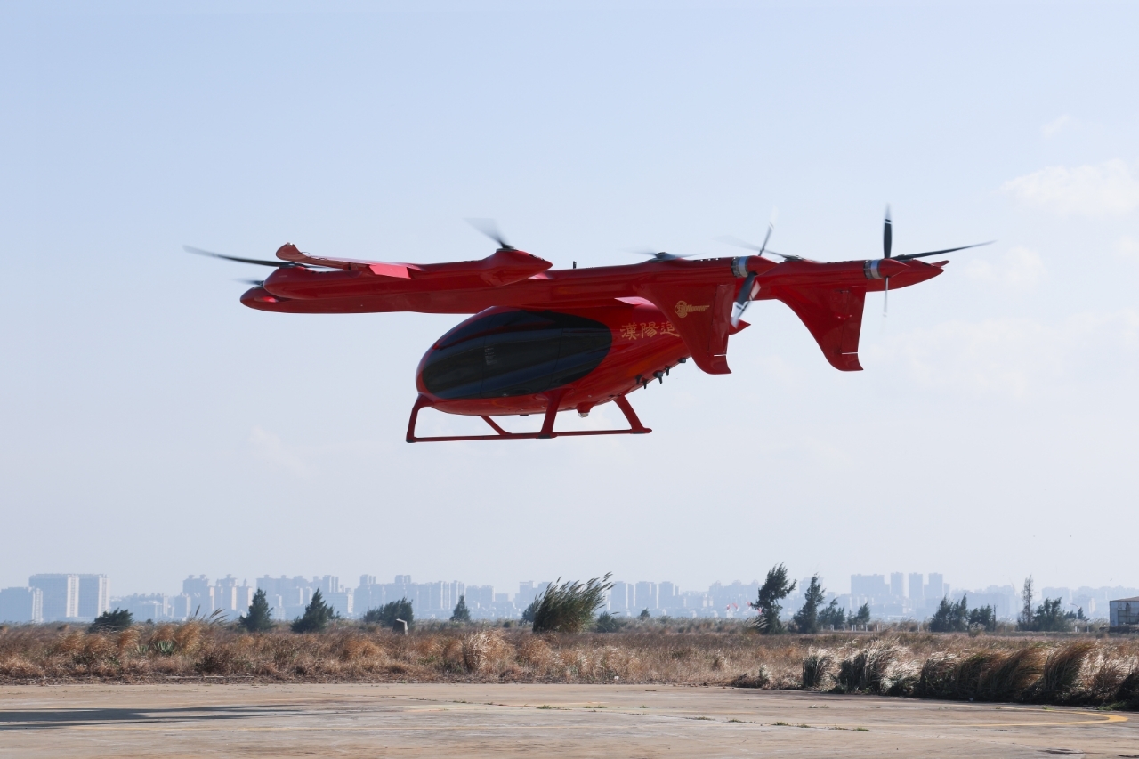 峰飞航空自主研发的凯瑞鸥采用复合翼构型,既能像直升机一样垂直起飞,也可以如固定翼飞机一样高效巡航,最大起飞重量2吨,最大商载400公斤,适用航程200公里。其已获民航局颁发的型号合格证(TC)、生产许可证(PC)与单机适航证(AC),是全球首个“三证齐全”的吨级以上eVTOL机型。