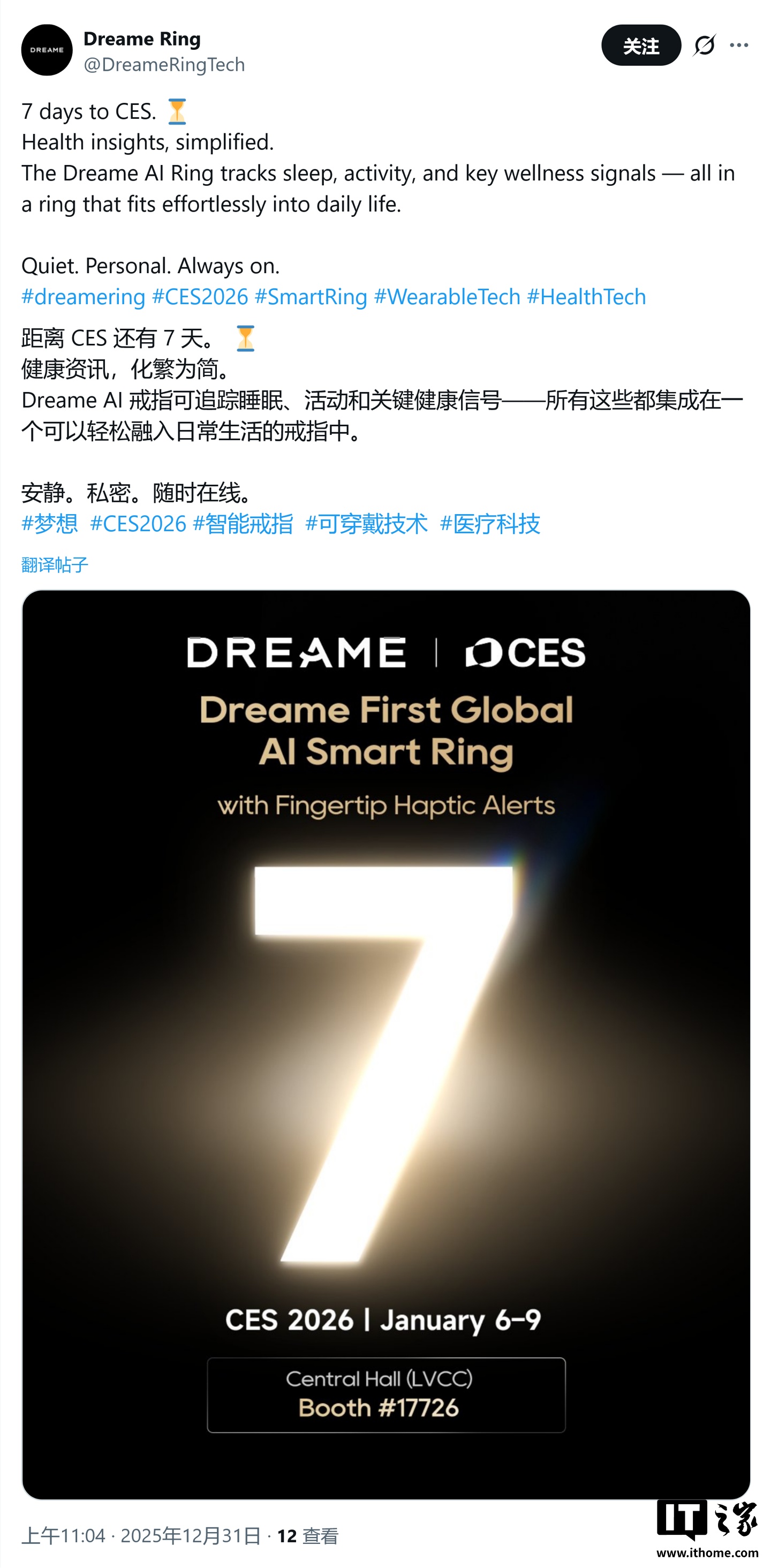 IT之家 1 月 1 日消息,科技媒体 GSMArena 昨日(2025 年 12 月 31 日)发布博文,报道称追觅(Dreame)将在 CES 2026 大展期间,推出首款智能戒指与“拇指级”运动相机,正式进军可穿戴设备与影像市场。
