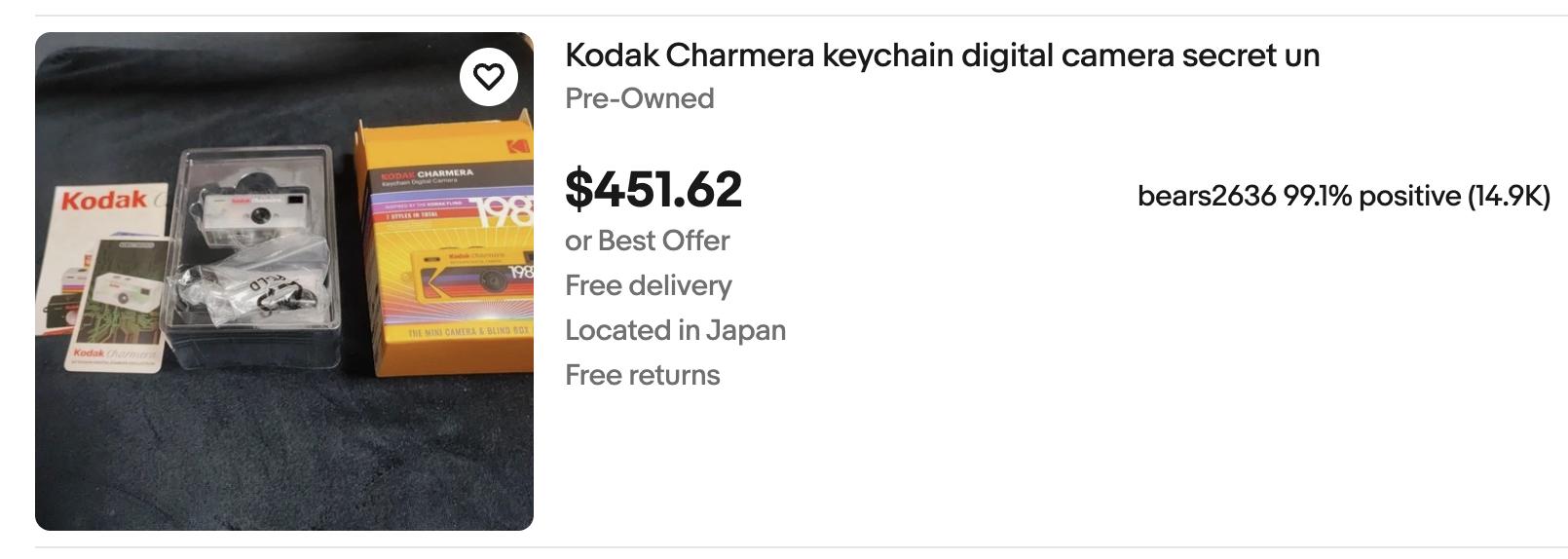 柯达Charmera在开售之后,越卖越火爆,在北美市场,这款相机已经出现「一机难求」的情况,eBay高价倒卖的更是不胜其数。假如是隐藏款透明设计版,它的价格一度飙升到451美元一台。