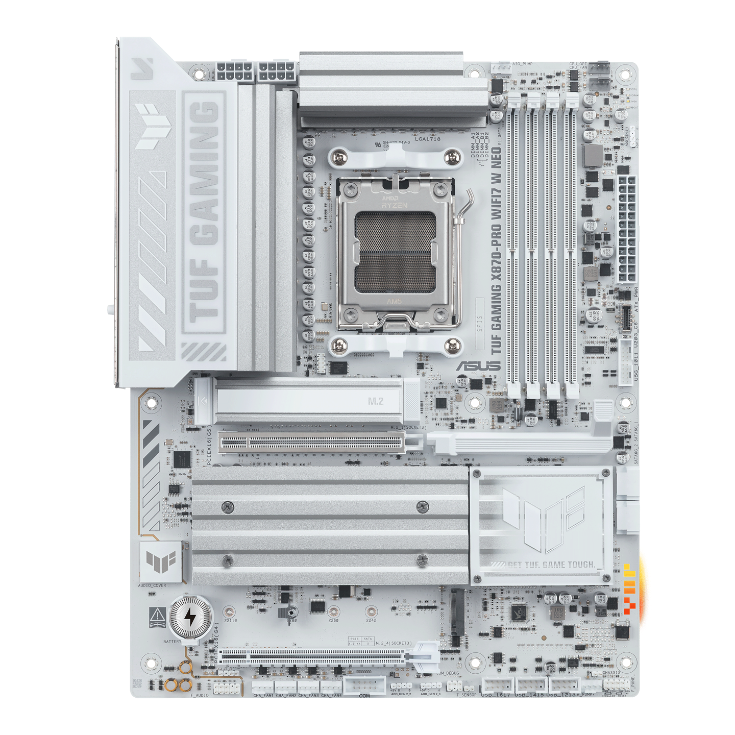 新的白色 X870 TUF 大板搭载 16+2+1 相 80A SPS 供电,提供 4 个 M.2 盘位和 1 个 5GbE RJ45 有线网口。