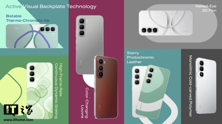 NOTE 60 系列的手机背部采用智能材料,如光致变色皮革和热致变色油墨。这些材料会根据光线和温度变化,使设备变换颜色、显示 3D 图像,甚至展示流动动画。
