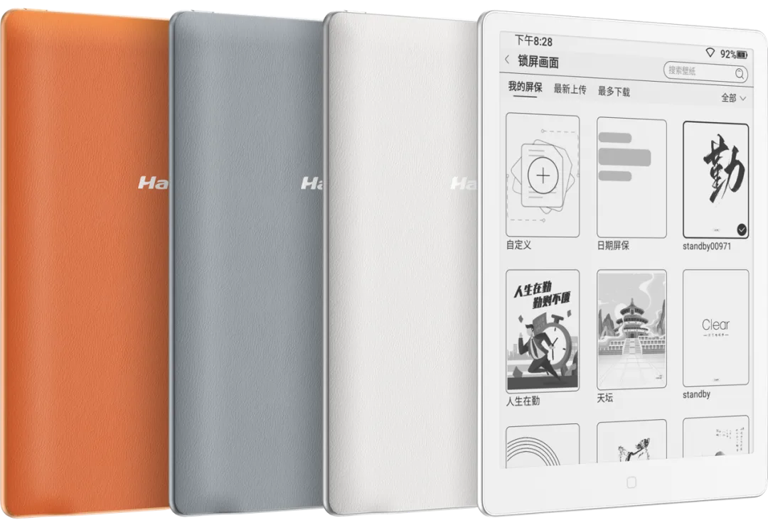 设计方面,这款电纸书搭载 CNC 金属中框,拥有白色、灰色、橙色三种配色可选,拥有开放式系统,用户可以自由安装各种第三方阅读 App,还带有 PDF 重排功能,可优化阅读体验。